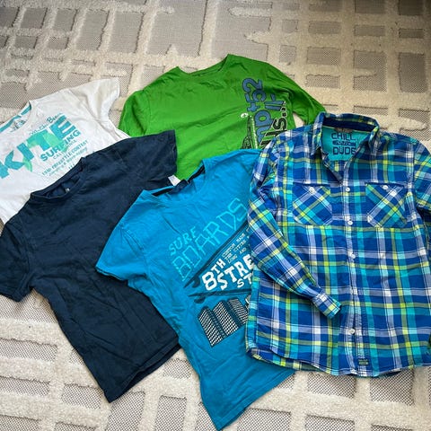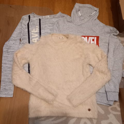Paitoja 158-164 koossa. Kolme ohuempaa pitkähihaista, huppari ja lyhythihainen kesäpaita jossa olkapäät jäävät paljaaksi. Hupparissa ja yksisarvispaidassa kevyt nyppy pinnassa, muut siistejä.