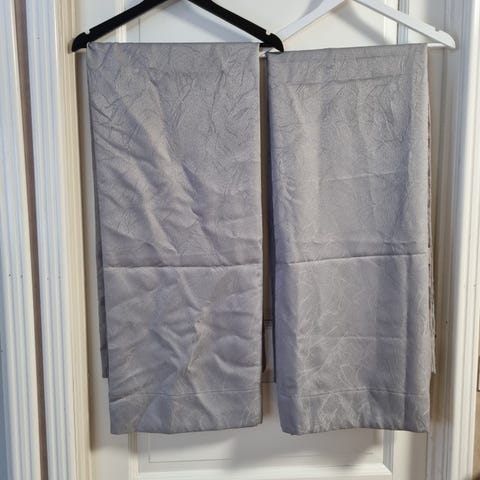 Harmaat verhot, joissa on himmeästi hohtava pinta ja eläväinen, oksamainen kuosikuvio. Sopivat käytettäväksi esimerkiksi olohuoneessa tai makuuhuoneessa tavallisina sivuverhoina. Kuvissa 4 kpl samanlaisia verhoja. Olen itse ommellut ompelukoneella ylä- ja alasaumat. Huom. Samasta kankaasta ompelemani lyhyet (pituus 160 cm) verhot 2 kpl ovat minulla myytävänä erikseen. Verhot on silittämättä, joka näkyy kuvissa.