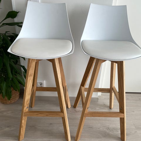 Hyväkuntoiset korkeat baarituolit puujaloilla. HUOM. Pöytä ei myynnissä.