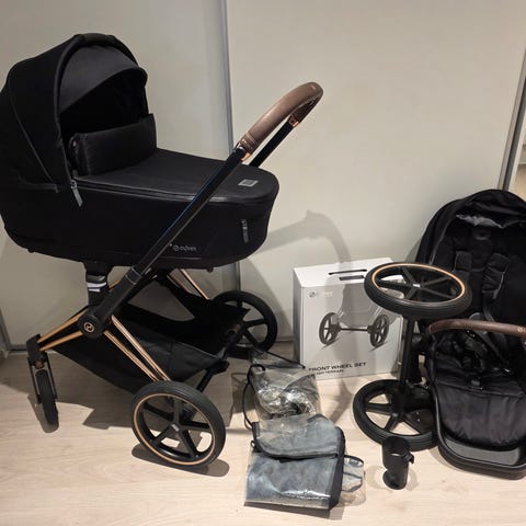Cybex Priam 4 rattaat mustilla Sepia Matt Black -kankailla ja mustalla rungolla. Ostettu uutena 10/2024 ja olleet vähäisellä käytöllä yhdellä lapsella. Pakettiin kuuluu täysin käyttämätön uusi tavarakori (kuvissa paketissa avaaamaton) sekä käyttämätön sadesuoja. Mukaan myös Cybex-adapterit.