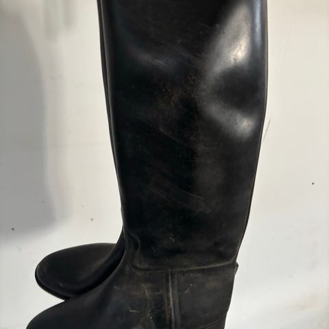 Horsehead ratsastussaappaat mustaa nahkaa. Vetoketju takana ja joustavat paneelit istuvuuden parantamiseksi.