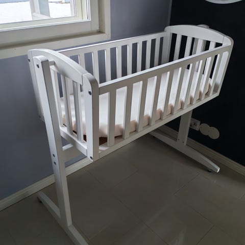 Hyväkuntoinen Moweo Blake sivuvaunusänky seuraavalle pienokaiselle. Oli meillä noin puoli vuotta käytössä, kunnes kiloraja tuli vastaan. Ostettu kesällä -25 Jollyroomilta.
