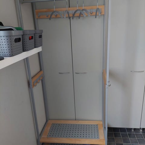 Uudenveroinen, vähällä käytöllä ollut naulakko. Musta metallirunko