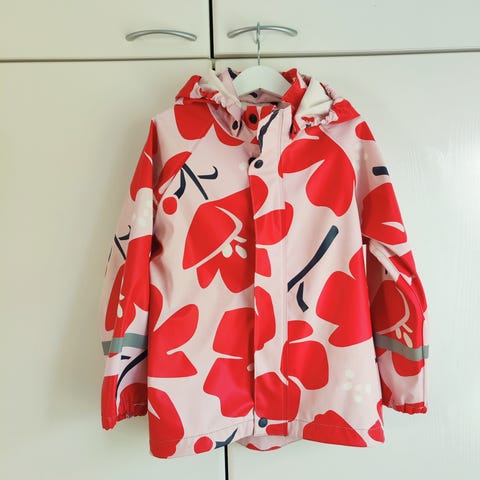 Reiman neonpinkki sadetakki koko 116. Hyväkuntoinen, tosi siisti ja ehjä. Ei eläimiä tai tupakointia. Pesty juuri hajusteettomalla pesuaineella.