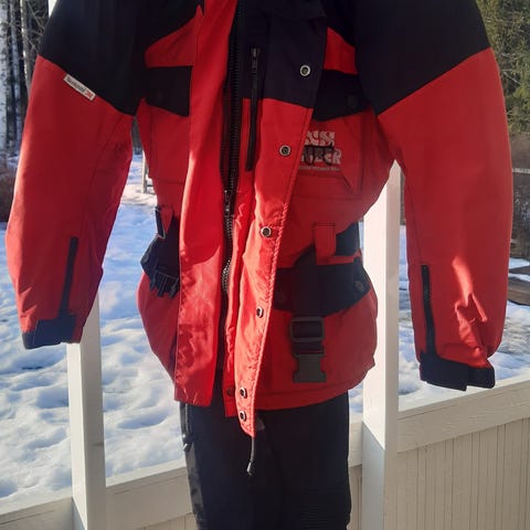 Richa mp takki ja housut, molemmissa hyvät suojat ja irto-toppavuoret. Kokomerkintä S, hyvin sopii 38 kokoiselle ja mahtuu kerroksia alle. Takki vain joitain kertoja käytetty, housuissa pientä käytön jälkeä. Pitävät hyvin vettä. Hp 30€/osa tai 50€ koko satsi. Tampereella ja kulkeutuvat pohjoisen suuntaan. En postita.