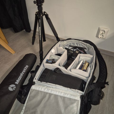 kameran, repun, kolmijalan, muistikortin ja laturin akkuineen voi ostaa erikseen 450€ hintaan
