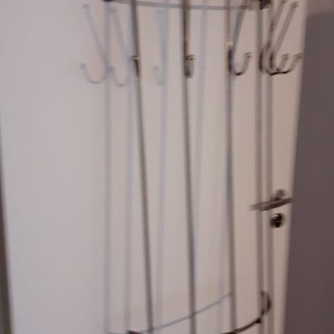 IKEA naulakko penkillä ja alahyllyllä, mustaa metallia. Yläosassa useita koukkuja takkien, laukkujen tai muiden asusteiden ripustamiseen. Penkkiosa tarjoaa istumatilan esimerkiksi kenkien pukemista varten. Penkin alla on rei’itetty metallihylly, joka soveltuu kenkien tai säilytyslaatikoiden säilytykseen. Rakenne on metallinen ja väriltään musta, sopii eteiseen tai kodin muihin säilytystiloihin.