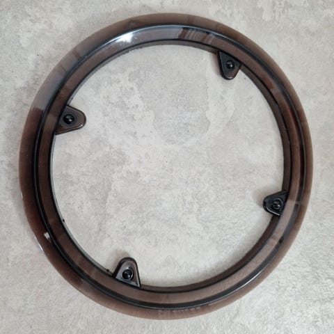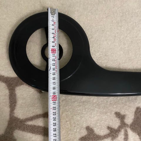 Polkupyörän ketjusuoja. Materiaalina muovi ja väri musta. Ketjusuoja on tarkoitettu asennettavaksi kampisarjan ja ketjun ympärille suojaamaan vaatteita ja ketjua. Pituus noin 45 cm ja halkaisija kampiosan ympärillä noin 16 cm (mitat kuvien mittanauhan perusteella). Sopii polkupyörään, jossa on yhteensopivat kiinnityspisteet ja mitat vastaavat nykyistä ketjusuojaa.