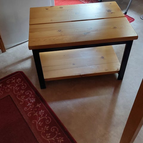 Chippendale sohvapöytä, halkaisija 79 cm, korkeus 61 cm. Säilytetty vintillä.