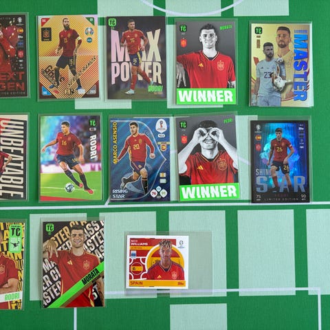 Erilaisia kortteja 19kpl. Mukana mm. Pedri. Griezmann myyty.