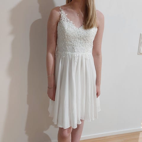Rippijuhlissa kerran käytetty. Hyvässä kunnossa, pientä käytön jälkeä voi löytyä aran värin vuoksi. Mekkoa ei ole pesty. Alunperin ostettu Haloselta.