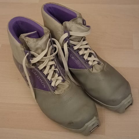 Salomon-monot koko 42 ja Peltonen-sukset 188cm.