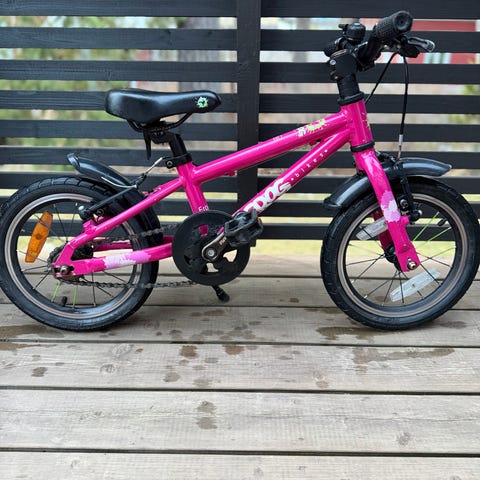 Siisti ja hyväkuntoinen Frog 40 lasten polkupyörä. Kevyt (6,5kg) ja laadukas ensipyörä. Rengaskoko 14 tuumaa.