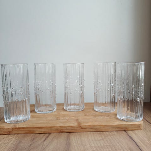Myydään 8 kpl Tapio Wirkkalan suunnittelemia Mesi -laseja. Korkeus 14 cm. Toimivat hyvin vaikka drinkkilaseina kesäjuhlissa. Lasit ovat ehjiä. Hinta/kpl.