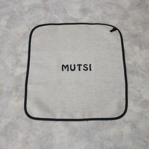 Uusi pellavasta ommeltu laudeliina/pefletti n.45x45cm, käsinpainettu päin persettä teksti.