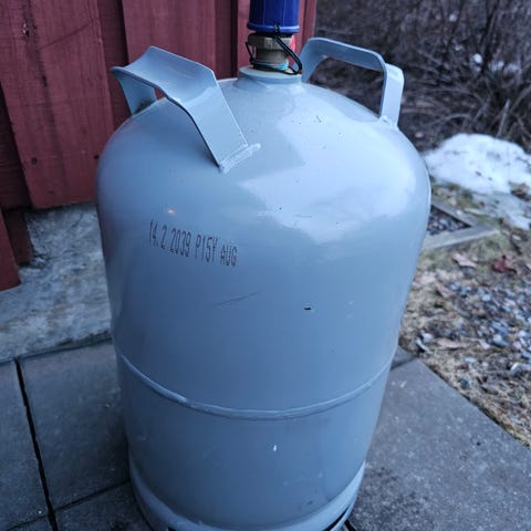 Matkailuauton vaihdossa jäi täysi kaasupullo ylimääräiseksi. Nouto Matarista.