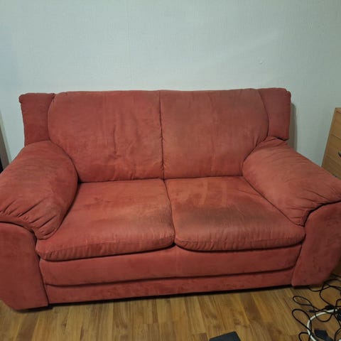 Hyväkuntoinen kahteen osaan menevä divaanisohva noudettuna. Vähän nukkaa kankaassa, joka nypittävissä pois.