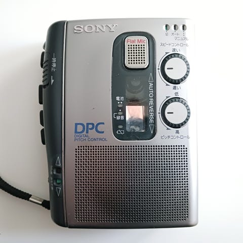 Hyvässä kunnossa ja ehjä nauhoitettava kasettisoitin omalla kaiuttimella ja mikrofonilla. Löytyy manuaalinen nopeudensäädin. Hihnat vaihdettu. Toimii kahdella AA-paristolla tai akulla.