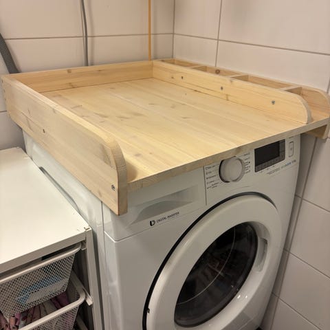 Hoitotaso lipaston päälle, meillä oli Hemnes lipaston päällä. Säädettävä pituus. On jo käytön jälkeä, meillekin 3v sitten tullut käytettynä.
