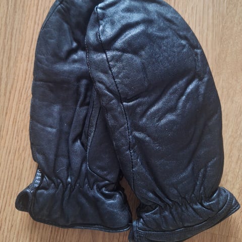 Mustaa nahkaa ja jonkinsortin metallia.