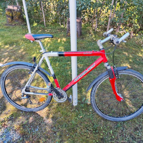 Pyörä on yksivaihteinen ja täysin ajokuntoinen. Shimanon nestejarrut, Bomberin säädettävä ilmakeula.