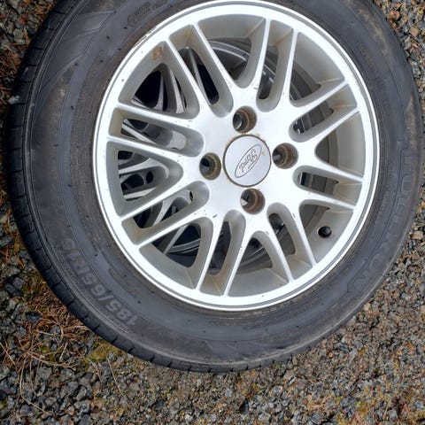 Kesärenkaat, joissa on pintaa vielä ainakin yhdeksi kesäksi. Olleet kiinni edesmenneessä Ford Focus 2007-autossa pienellä sovitepalalla eli keskireiän halkaisija on hieman ilmoitettua suurempi. Alumiiniset vanteet. Vain nouto Tampereen Epilästä.