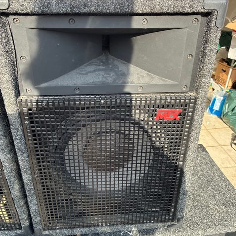 MTX PWR115 kaiuttimet, impedanssi 8 ohm. Koteloidut PA-tyyppiset kaiuttimet, joissa etusäleikkö ja yläosassa torvimainen diskanttielementti. Takapaneelissa kaksi rinnakkaista phone-liitäntää sekä jousiliittimet kaiutinkaapelille. Soveltuvat esimerkiksi äänentoistoon bändeille, juhliin tai harjoitustiloihin erillisen vahvistimen kanssa käytettynä.