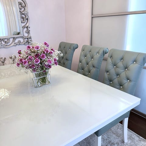 Todella helppo pitää siistinä sillä kaikki lika lähtee helposti kostealla rätillä. Tuolit on hyvässä kunnossa Jä vähän käytetyt