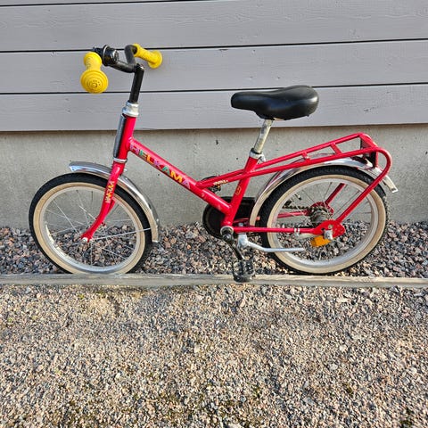 Meille käytettänä ostettu pyörä, jolla lapset ovat ajaneet 3-4 vuotiaiksi. Apurattaat mukaan. Nouto Kilosta (Lansasta).