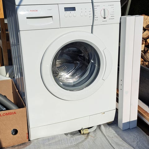 -Bosch pyykinpesukone jonka luukku saanut osumaa ja auki pidettäessä ”roikkuu”, mutta ei vaikuta toimintakuntoon ja kaikki pelittää muuten hyvin.