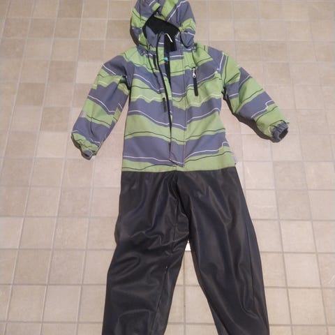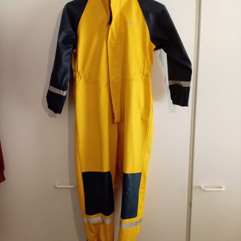 Elloksen yksisarvis vuorellinen kurahaalari. Muuten ehjä mutta heijastinnauhat irronneet pesussa hihoista ja lahkeista. Jalkalenkit alkuperäiset ja ehjät mikä kertoo vähästä käytöstä.