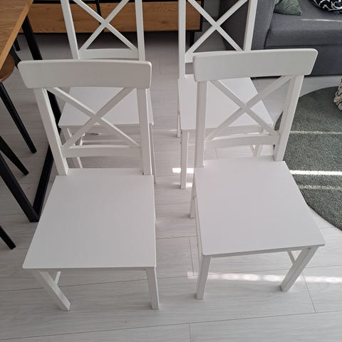 Ikean mustat Idolf ruokapöydän tuolit. Kaksi kappaletta. Ihan hyvässä kunnossa mutta vähän käytön jälkiäkin näkyy. Toisen tuolin jalassa takana vähän valkoisesta pöydästä tarttunutta maalia (katso kuva). Nouto Nöykkiöstä.