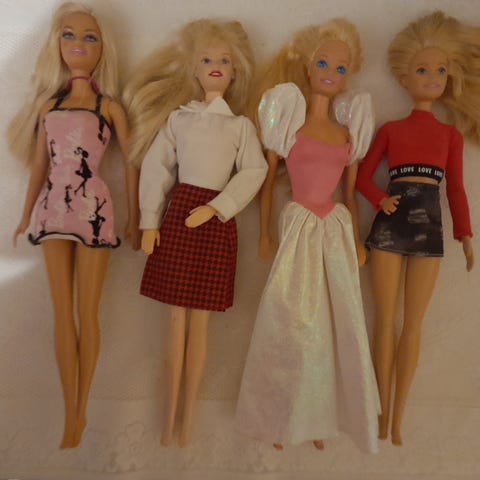 5 erilaista barbie- tai vastaavan tyylisiä nukkeja.