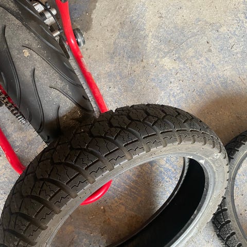 Moottoripyörän rengas ja vanne. Rengaskoko 190/55 ZR17 M/C. Myyntikuvissa näkyy yksi irrallinen rengas sekä yksi rengas vanteella ja jarrulevyllä. Soveltuu moottoripyörään, johon tämä rengaskoko ja vannetyyppi sopivat. Tarkemmat yhteensopivuustiedot kannattaa varmistaa omasta ajoneuvosta tai valmistajan tiedoista.