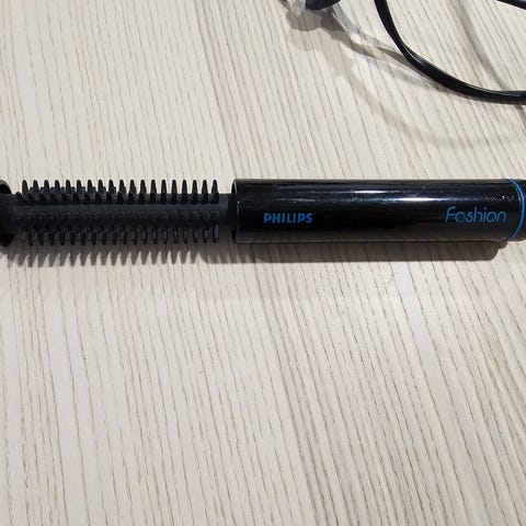 Mukana useampi erilainen kiharruspää, suoristinlisäosa, 2 hiusklipsiä ja lämmönkestävä säilytyspussi.