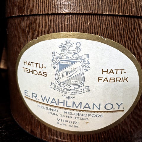 Kunto: Hattu hyvässä kunnossa, laatikossa ajan tuomaa kulumaa