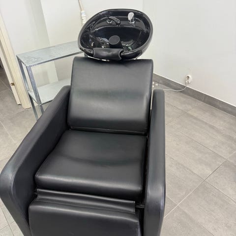 Kampaamotuoli ja peilipöytä musta