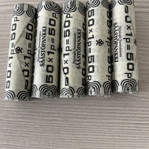 Myydään erä alkuperäisiä Suomen Rahapajan kolikkorullia markka-ajalta.