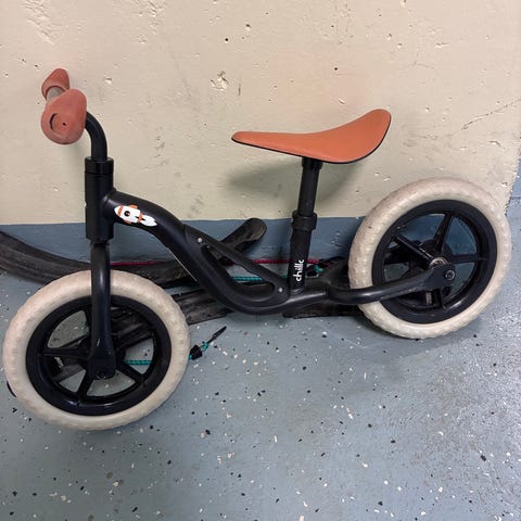 Kovalla käytöllä ollut potkupyörä. Todella kestäväksi todettu. Umpikumirenkaat.