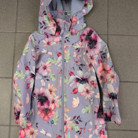 Name it välikausitakki, koko 104. Ehjä ja yleisilmeeltään siisti, mutta vaaleanpunaisissa osissa tummentumaa. Pesty, mutta en ole kokeillut tahranpoistoa. Nouto Karhunmäestä.