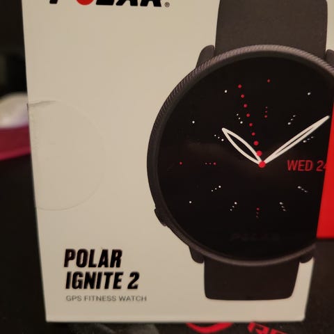 Polar Ignite 2 urheilukello, joka hankittu nuorelle lahjaksi, muttei ollutkaan mieluinen. Ei siis ole ollut käytössä kuin ihan vähän aikaa. Pakkaukseen kuuluu kello, latauskaapeli sekä ylimääräinen ranneke. Kello soveltuu päivittäiseen aktiivisuuden seurantaan ja harjoittelun seuraamiseen. Ranneke on säädettävä, silikoniranneke, joka sopii ranteeseen mukavasti. Nyt halvin uusi liikkeessä 119€.