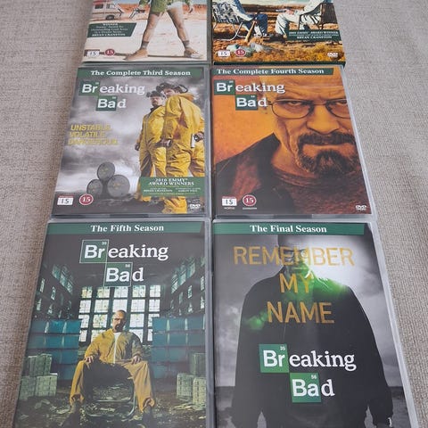 Breaking Bad The Complete Series blu-ray-boksi. Sisältää televisiosarjan kaikki 5 tuotantokautta ja yhteensä 62 jaksoa 15 levyllä. Julkaisussa on ikäraja 15. Formaattina on blu-ray, ja kotelo on monilevyboksi, jossa jokainen kausi on omassa kotelossaan. Tekstit Mm.suomi.
