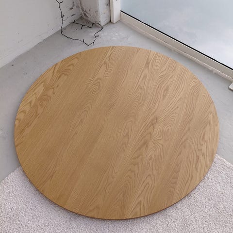 Pöydän kansi tammilevyä, joka on käsitelty pähkinäpuun sävyisellä puuöljyllä.