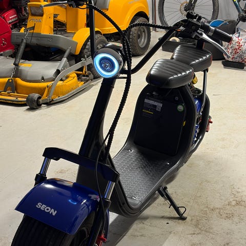 Kolmipyöräinen sähköskootteri, jossa on korkea selkänojallinen istuin ja käsinojat. Ajoneuvossa on tuulilasi, peilit, jalkataso sekä takana lukittava tavaralaatikko. Ohjauspaneelissa on digitaalinen näyttö ja hallintapainikkeet. Soveltuu liikkumiseen esimerkiksi kaupunkiympäristössä ja asiointimatkoilla. Väri on punainen hopeilla yksityiskohdilla.