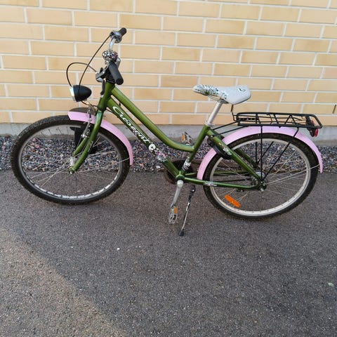 VARATTU. Lasten polkupyörä, jossa 24" renkaat. Jalka- ja käsijarru, löytyy pyörätuki. Runko on terästä. Käytön jälkiä on, mutta ehjä ja toimiva, menee hyvin vielä yhdelle käyttäjälle. Nouto Sepänkylä, Espoo.