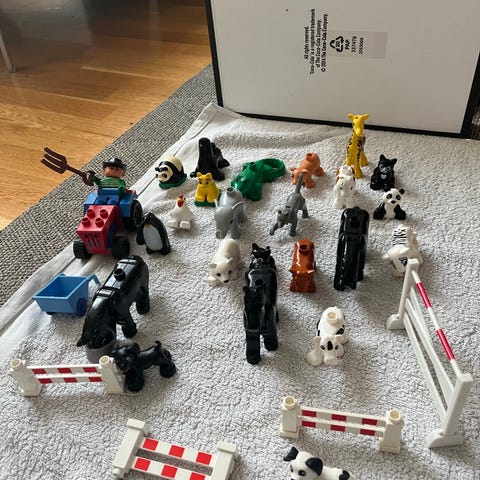 Erilaisia ajoneuvoja ja juna. Settiin kuuluu useita Duplo-autoja, lentokoneita, sekä värikäs junarunko Duplo-paloista. Osat ovat Yhteensopiva muiden Lego Duplo -osien kanssa. Nouto Tuusulasta tai Toridiili. Katso myös muut Duplo ilmoitukseni.