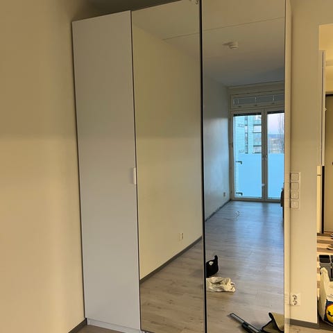 Ikea PAX peiliovilla on ostettu Ikeasta 2019 ja on hieman kulunut kahden kokoamisen jälkeen. Voi olla, että vaatii vielä hieman lisätukea kokoamisessa, mutta on jo vahvistettu edellisessä kokoamisessa. Toimii siis vielä hyvin käytössä.