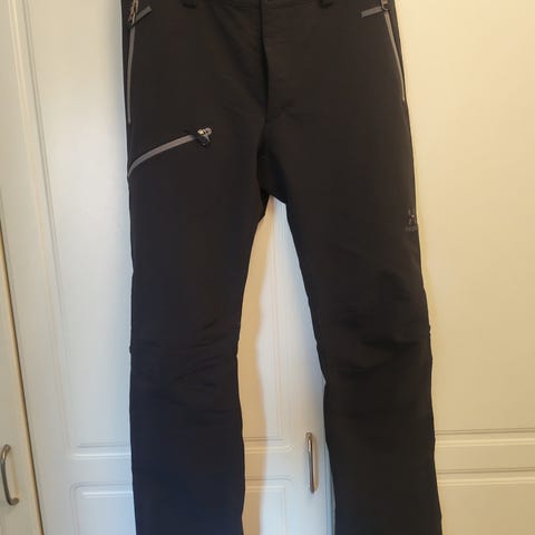 Haglöfs lasten / nuorten ulkoiluhousut, koko 164. Unisex malli ja väri musta. Housuissa joustava vyötärö ja muotoillut polvet, jotka parantavat liikkumisvapautta. Pepussa kulumaa ja kangas on hieman pehmentynyt. Toisessa polvessa viiltoja/naarmuja kuorikankaan pinnassa.