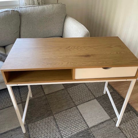 Myynnissä myös uusi työtuoli(jysk) Voin myydä pakettina 90e molemmat.