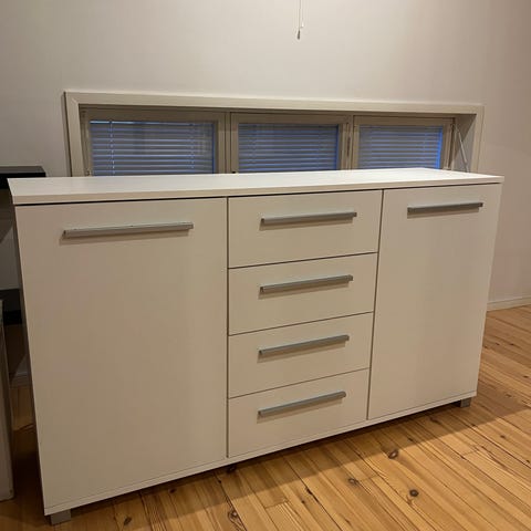 Valkoinen lipasto kolmella laatikolla. Tukeva ja siistissä kunnossa. Nouto tai kulkeutuu Saloon.
